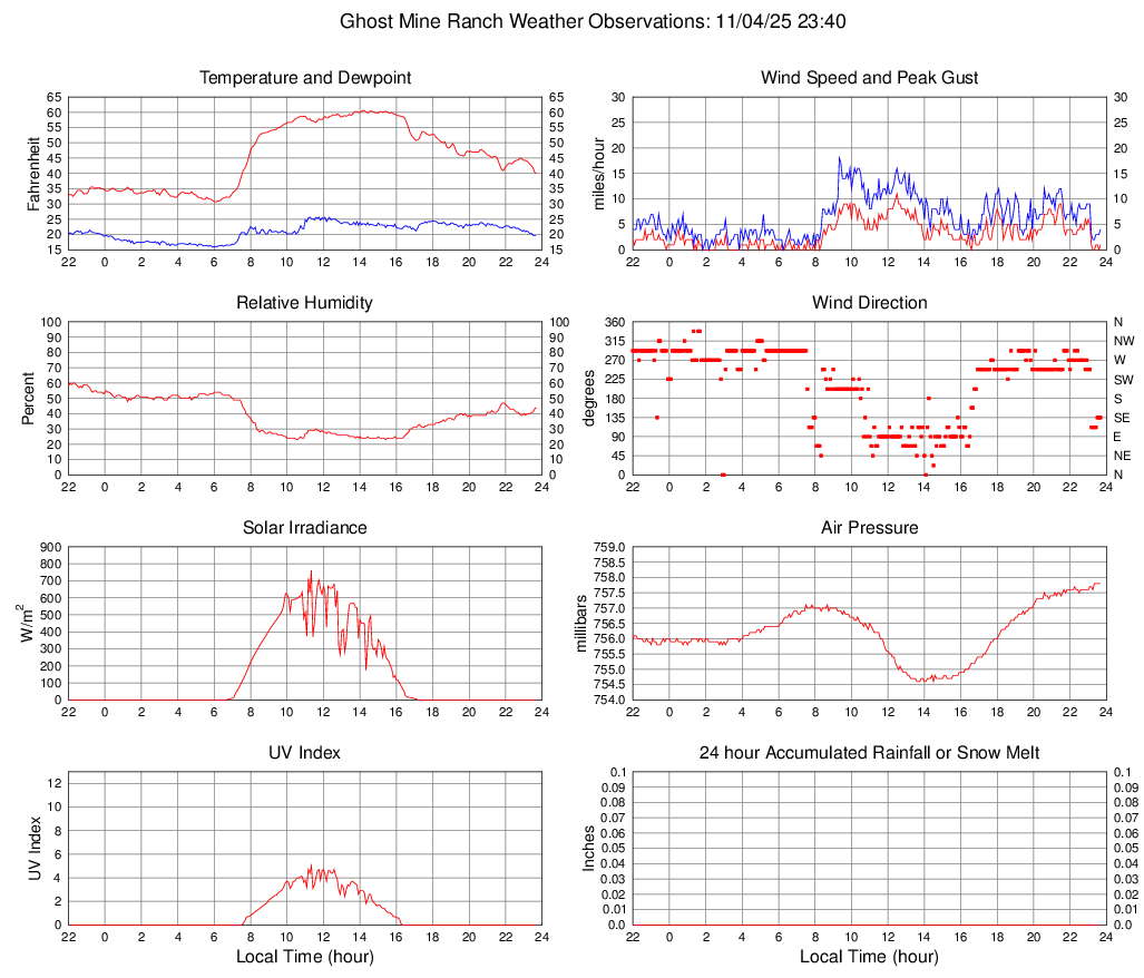 Temperature (F) 47.3 30.7 @ 06:05 60.6 @ 14:10 45.2