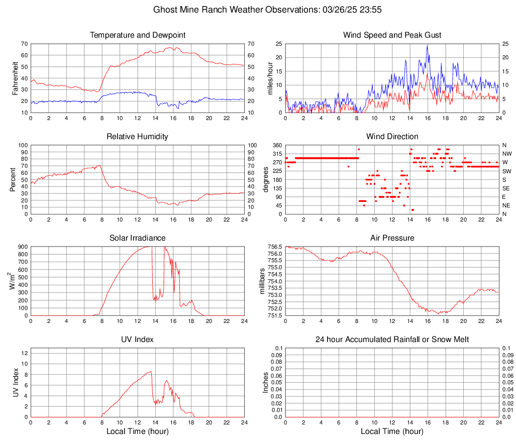 Dewpoint (F) 21.6 13.5 @ 16:35 28.3 @ 11:35 21.5