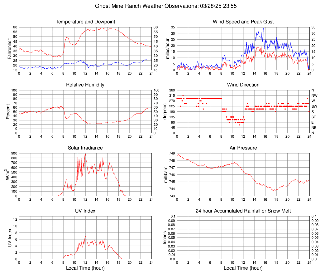 Temperature (F) 39.2 28.8 @ 06:45 59.2 @ 15:20 44.5
