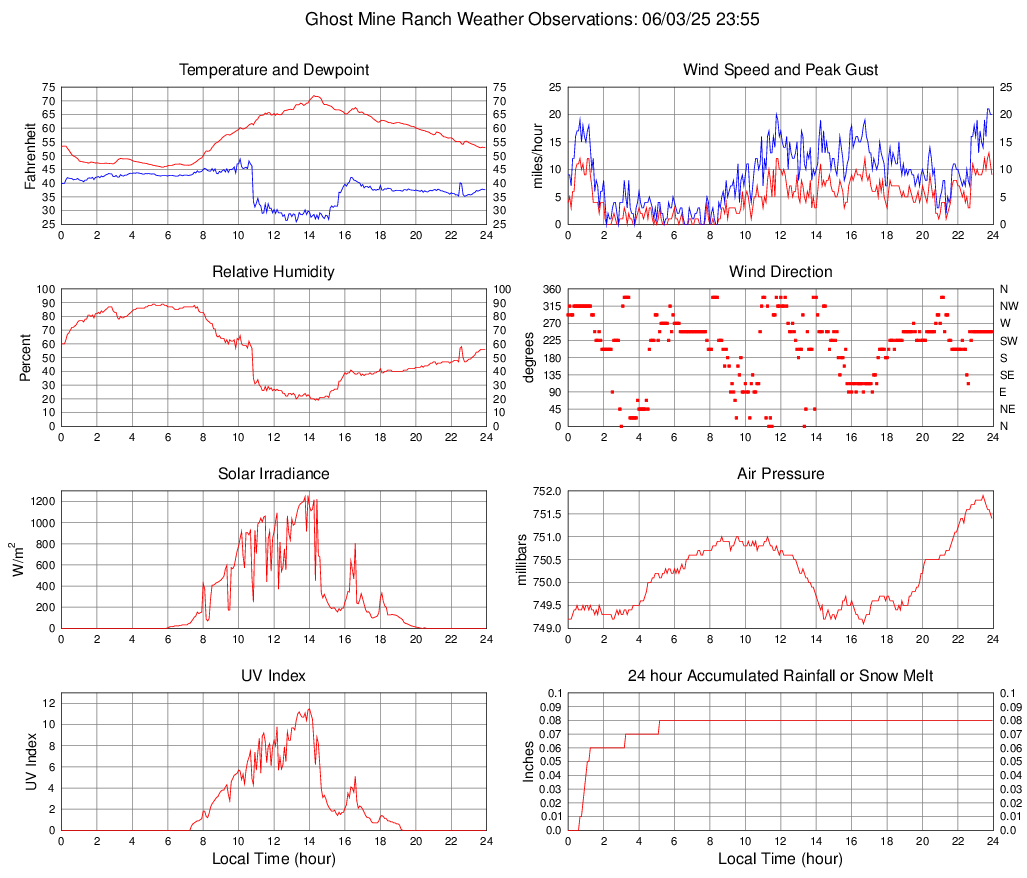 Temperature (F) 52.9 45.8 @ 05:40 71.9 @ 14:15 57.1