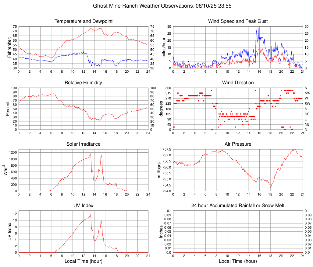Temperature (F) 55.0 41.6 @ 06:00 73.5 @ 15:15 58.2