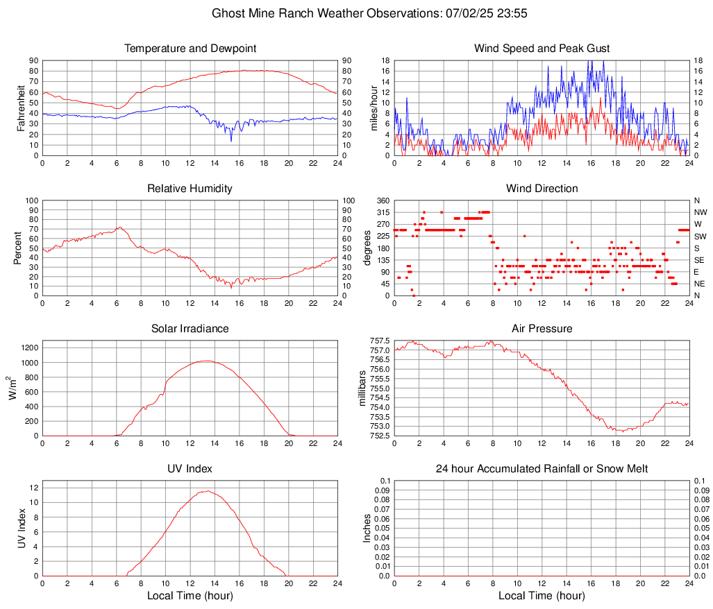 Temperature (F) 58.6 44.3 @ 06:10 80.8 @ 16:30 65.7