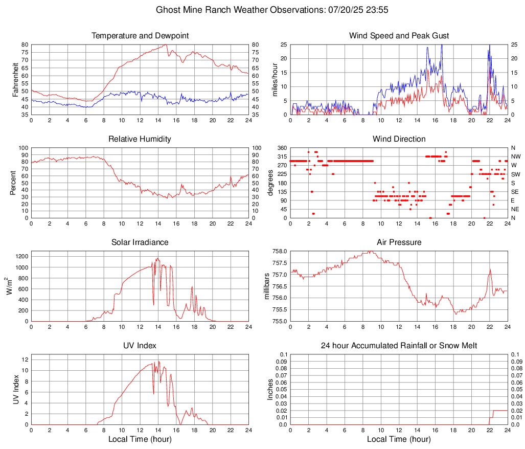 Temperature (F) 61.3 43.6 @ 06:05 80.0 @ 14:45 61.8