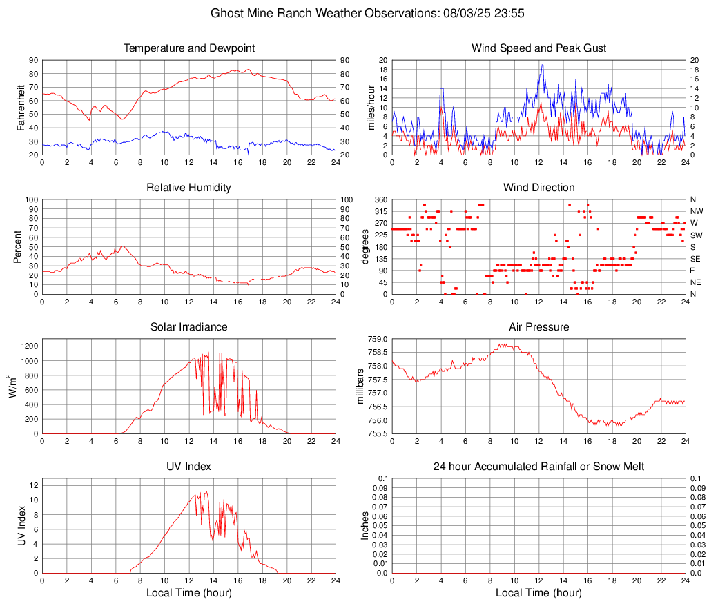 Temperature (F) 61.4 45.5 @ 03:50 83.1 @ 16:50 66.9