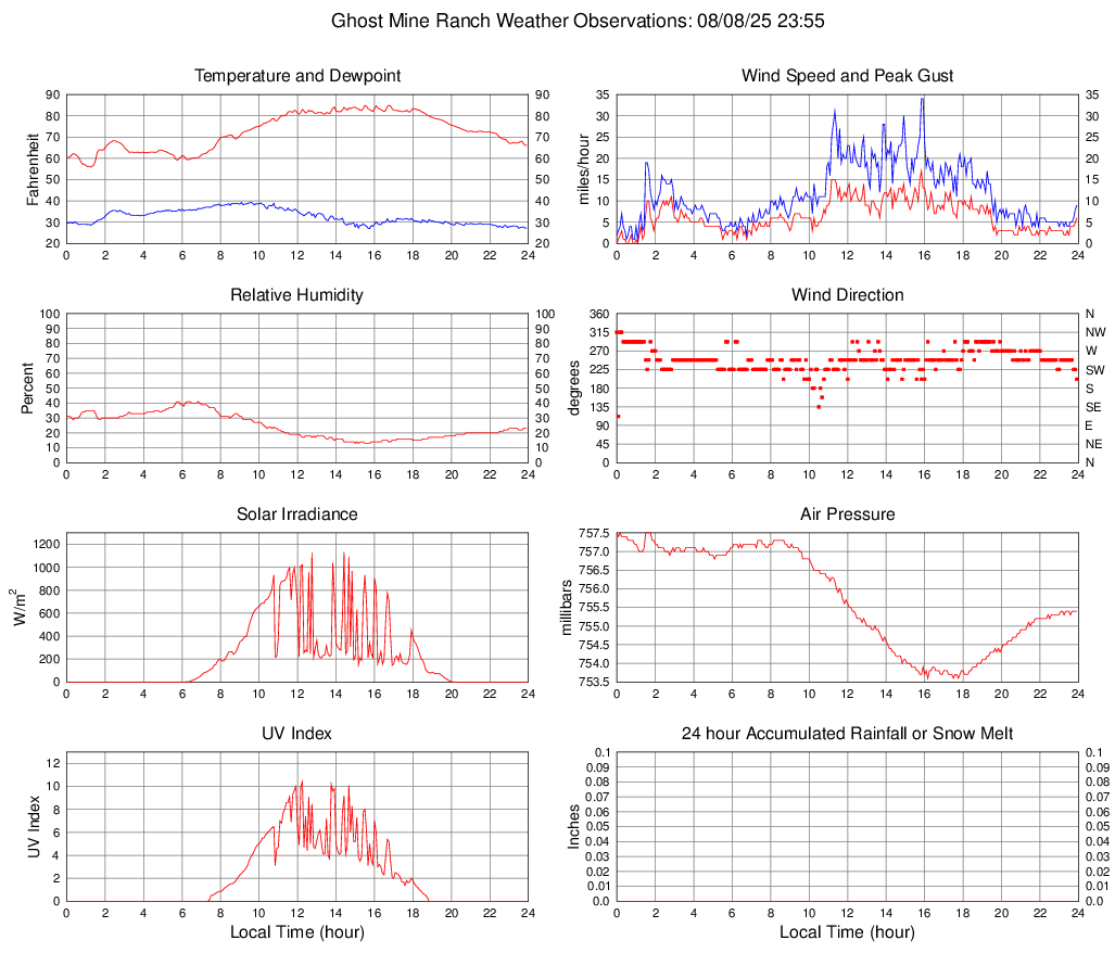 Temperature (F) 66.2 55.9 @ 01:15 84.9 @ 16:45 72.5
