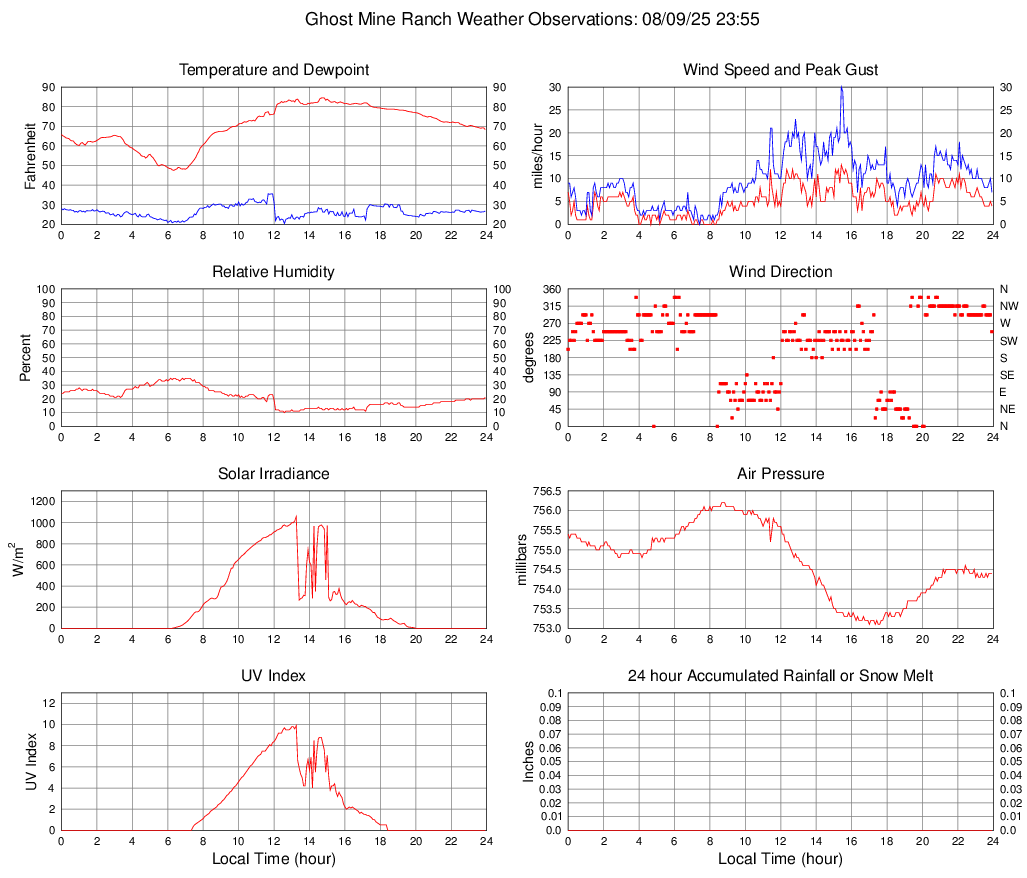 Temperature (F) 68.3 47.5 @ 06:20 84.5 @ 14:45 70.0
