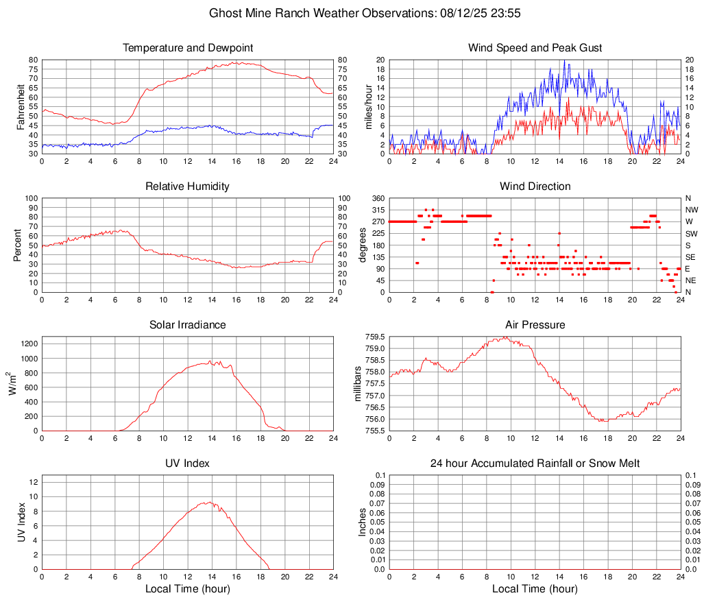 Temperature (F) 62.2 45.6 @ 05:50 78.6 @ 15:40 64.0