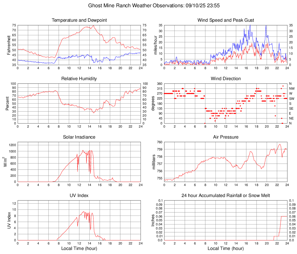 Temperature (F) 50.7 42.1 @ 07:05 74.7 @ 14:45 56.6