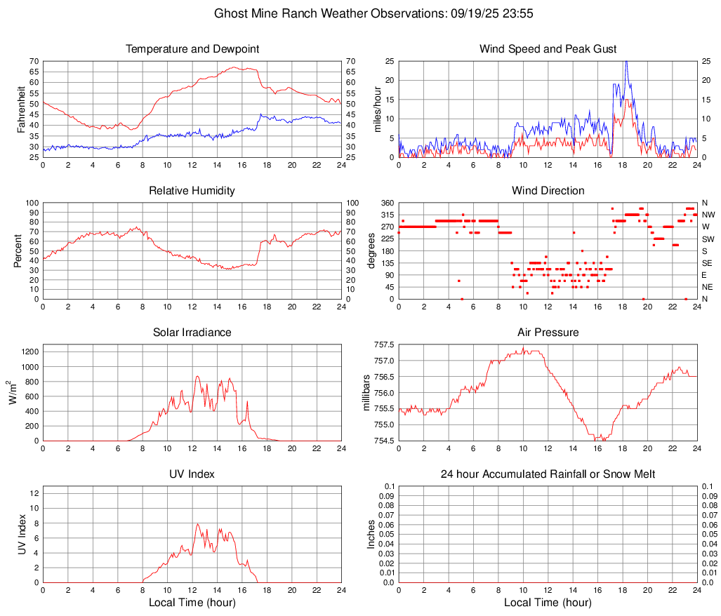 Temperature (F) 50.0 37.9 @ 07:05 67.1 @ 15:15 52.3