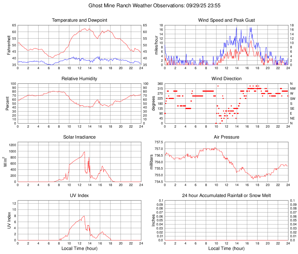 Temperature (F) 44.3 40.5 @ 06:45 62.4 @ 13:00 51.5