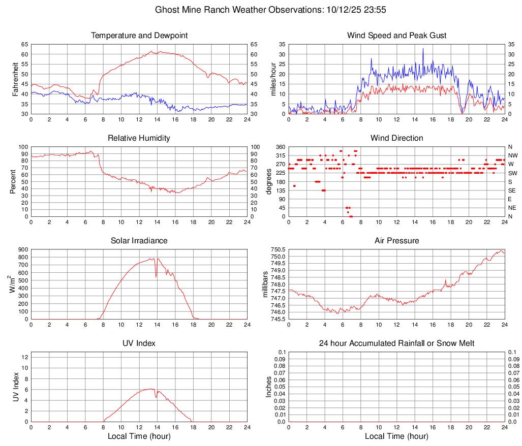 Temperature (F) 45.7 37.7 @ 06:20 61.5 @ 13:20 50.3