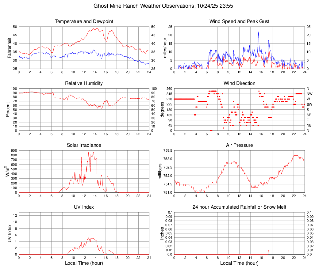 Temperature (F) 35.6 33.4 @ 01:50 49.2 @ 13:45 39.8