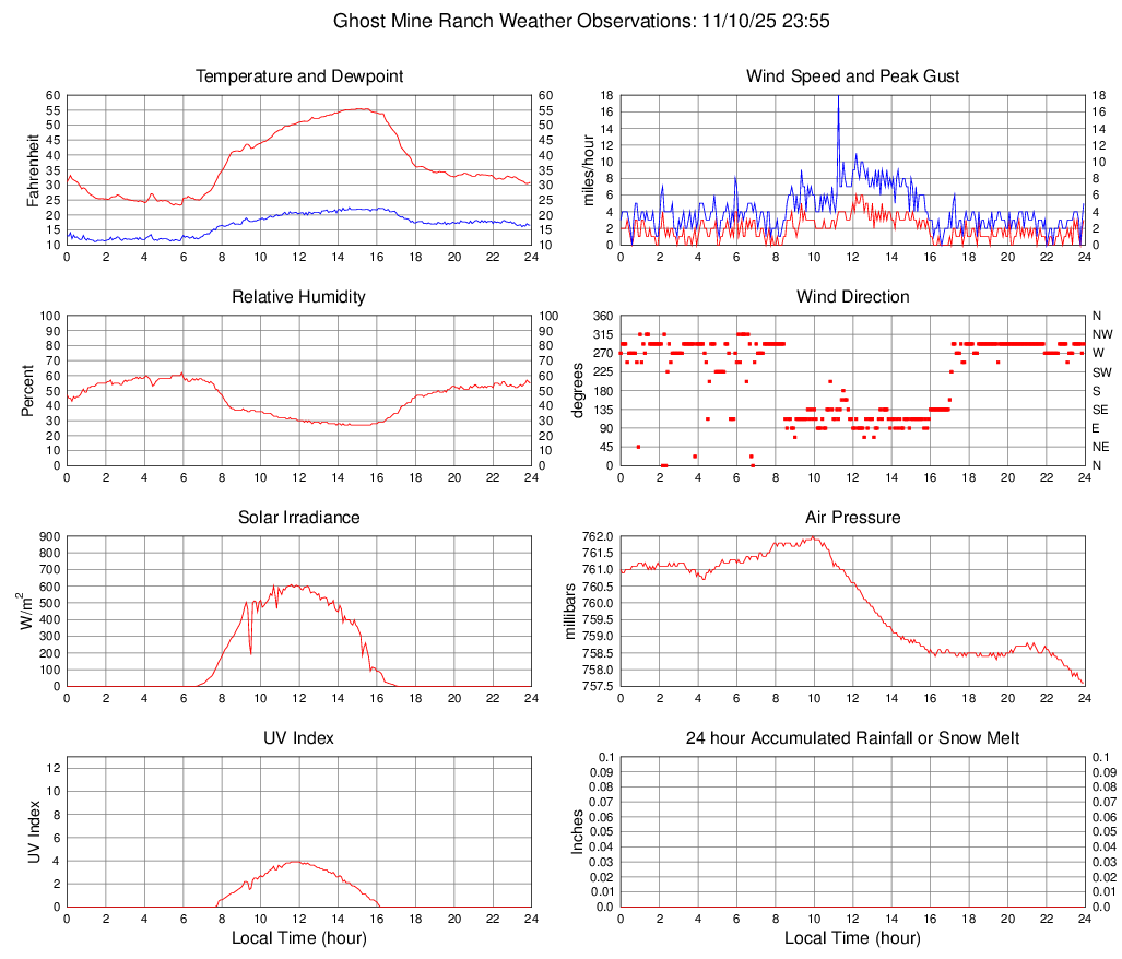 Temperature (F) 30.9 23.3 @ 05:30 55.5 @ 15:00 37.4
