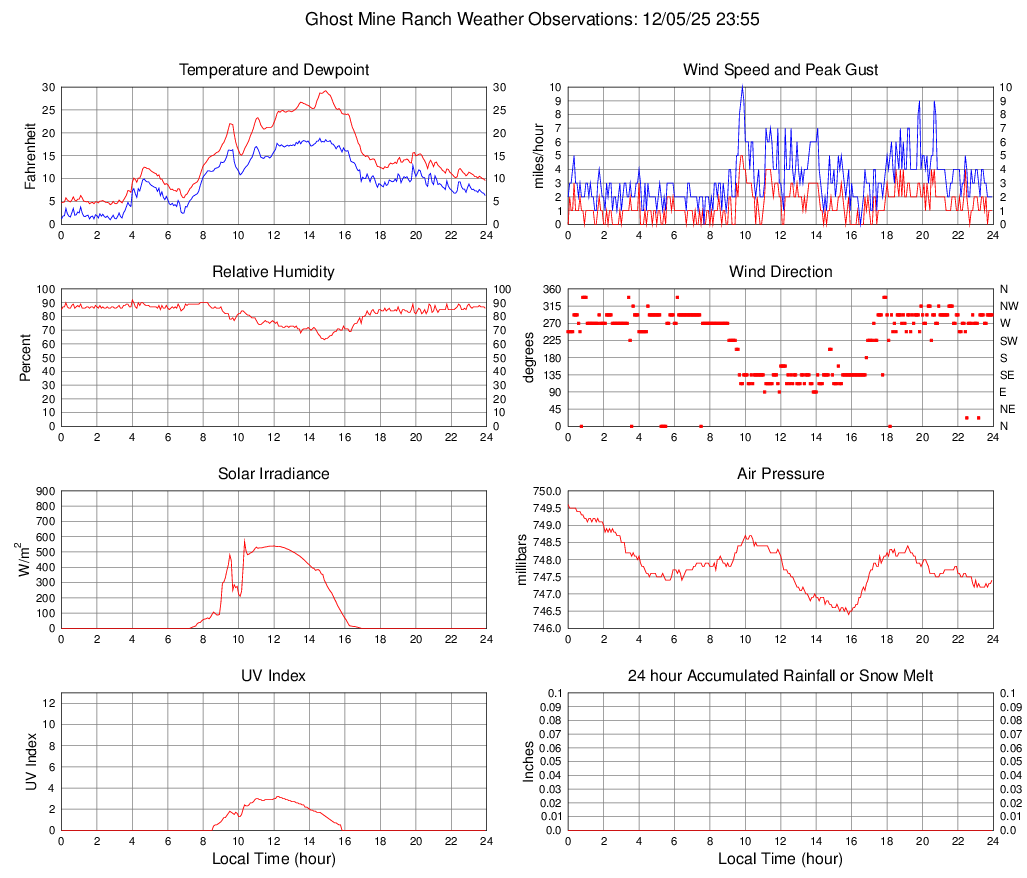 Temperature (F) 9.6 4.3 @ 02:45 29.2 @ 14:55 14.4