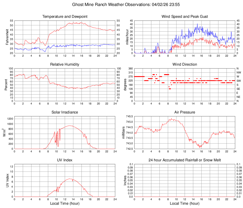 Temperature (F) 44.7 28.1 @ 07:20 52.9 @ 15:45 42.1