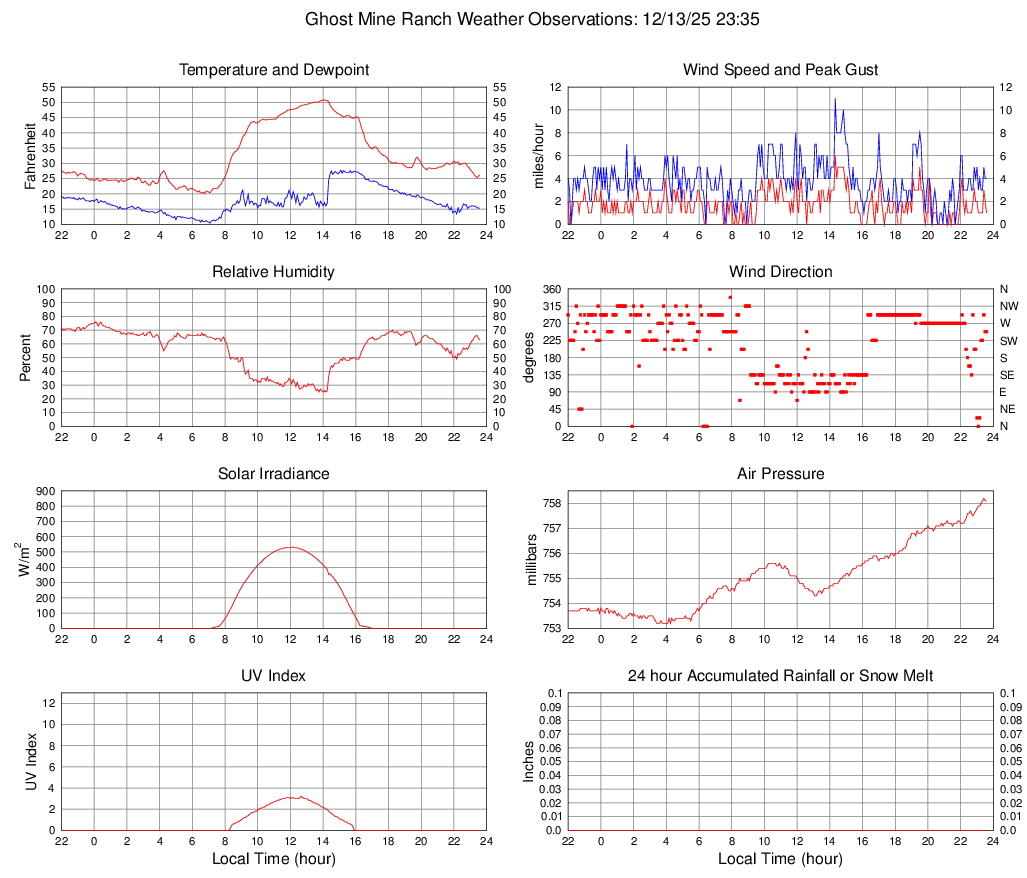 Temperature (F) 28.6 20.1 @ 06:45 50.8 @ 14:05 32.7