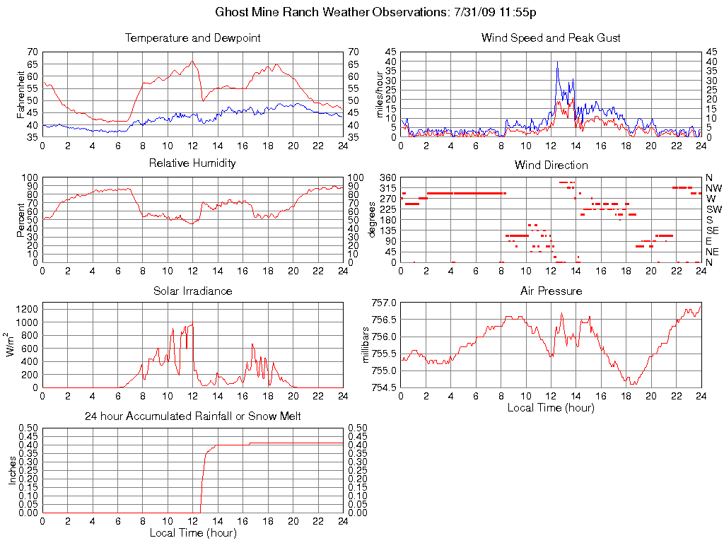 Temperature (F) 46.4 41.2 @ 05:10 66.2 @ 12:00 53.4