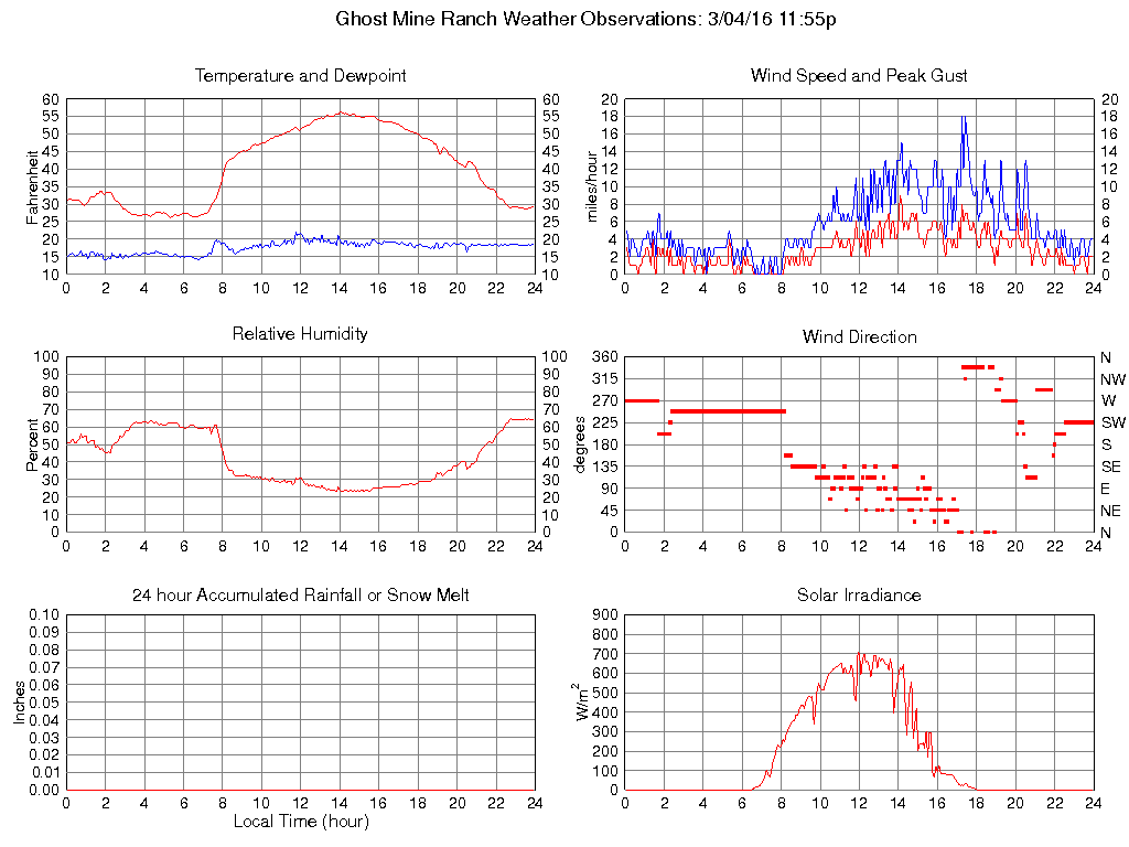 Temperature (F) 29.2 26.2 @ 05:20 56.3 @ 14:05 40.6