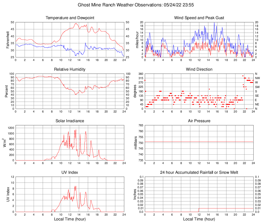 Dewpoint (F) 25.6 25.6 @ 23:55 35.2 @ 15:25 31.5
