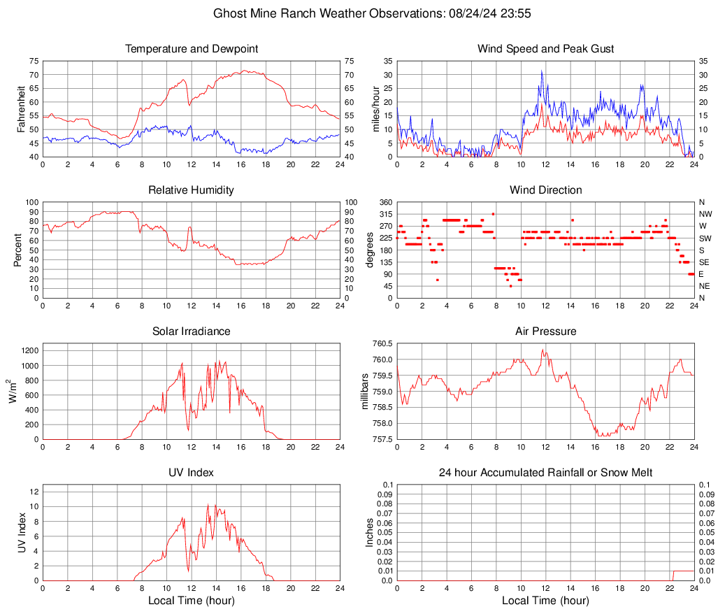 Temperature (F) 53.8 46.7 @ 06:10 71.5 @ 16:15 59.5