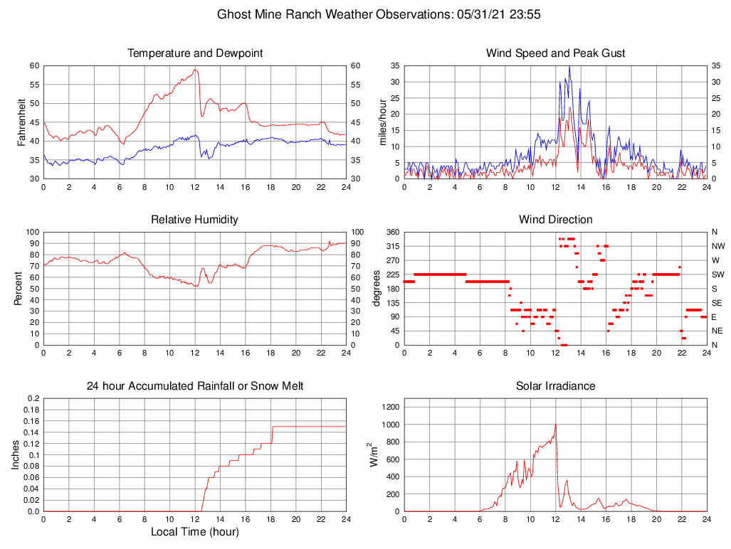 Dewpoint (F) 39.1 33.5 @ 00:40 41.6 @ 12:05 38.0