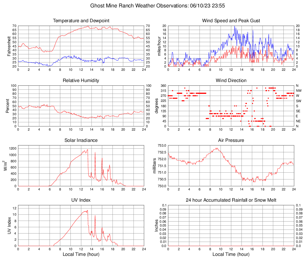 Temperature (F) 54.6 37.5 @ 04:55 69.7 @ 13:15 56.6