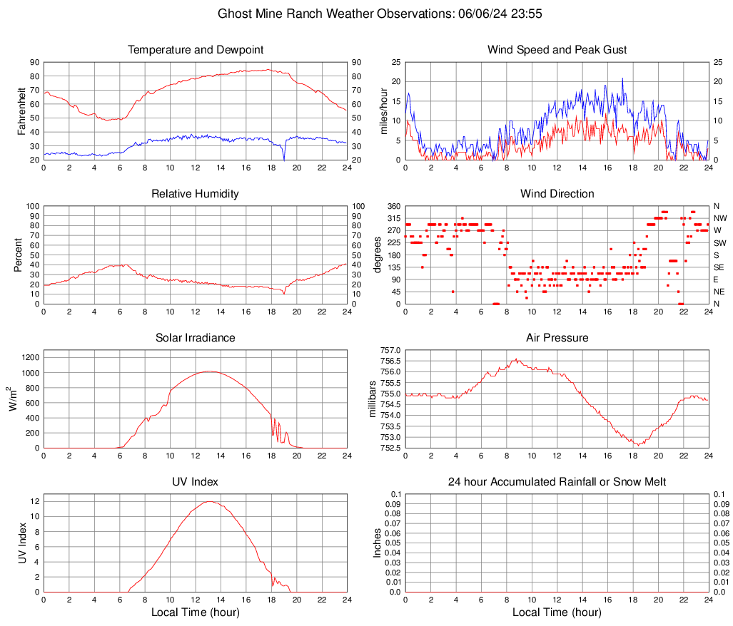 Temperature (F) 55.5 48.1 @ 05:00 84.7 @ 17:45 69.4