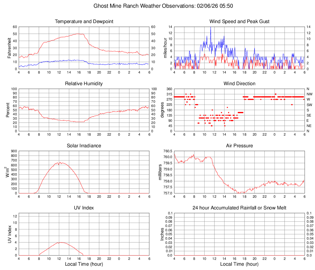 Temperature (F) 21.9 15.8 @ 05:00 50.1 @ 15:45 32.2