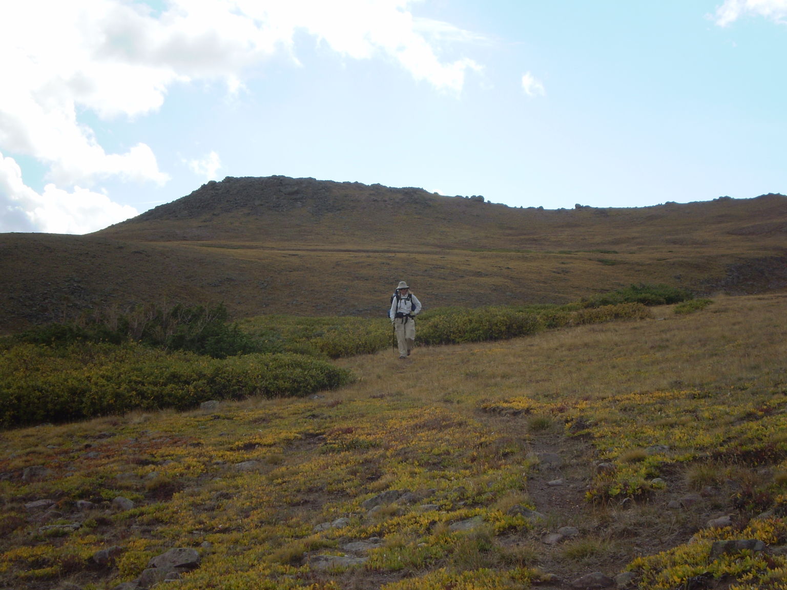 Susanna hiking across tundra