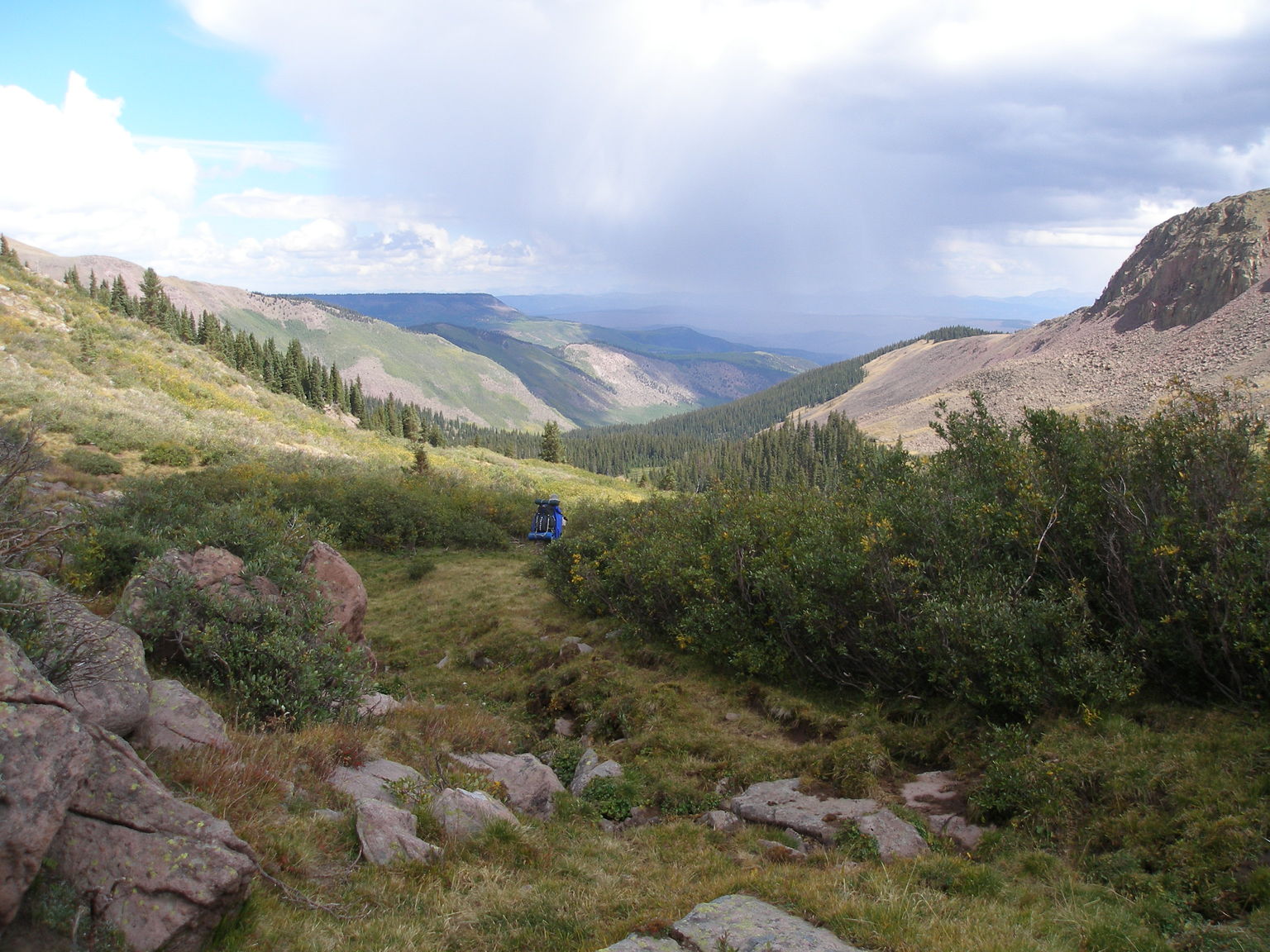 Down Bonito Creek, we've lost the trail and a storm is moving in