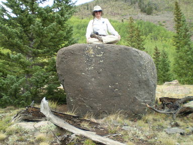 In the lotus position, on top of a strange black boulder